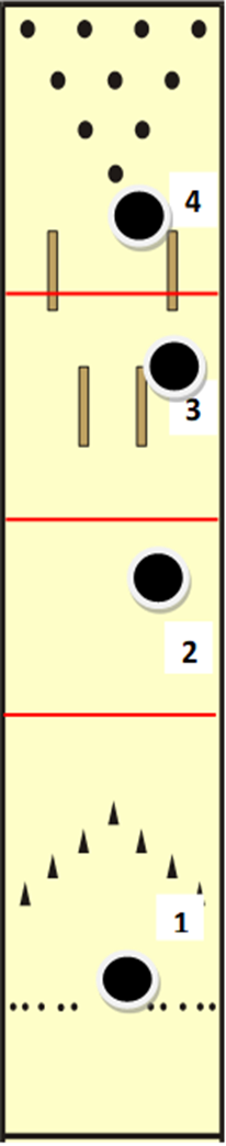 - De la ligne de faute jusqu’à 20 pieds sur la piste.