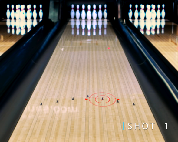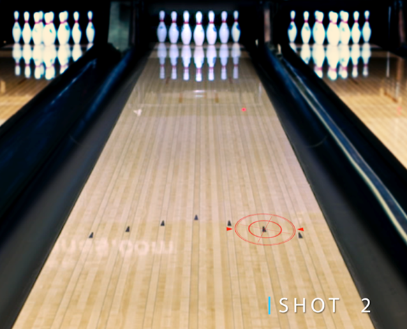 Pour le 2ème lancer, utilisez aussi votre boule de référence en visant la 2ème flèche pour tester la partie extérieure de la piste. Vous saurez si l’extérieur de la piste est utilisable ou pas. S’il l’est, le niveau des scores sera plus élevé. S’il ne l’est pas, le niveau des scores sera plus faible.