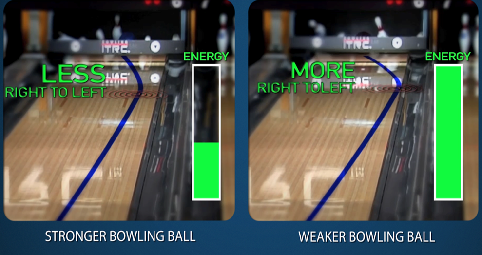 Si vous choisissez une boule plus agressive, vous consommerez plus d’énergie mais vous traverserez moins de lattes en restant dans l’huile et vous obtiendrez moins d’angle d’attaque.